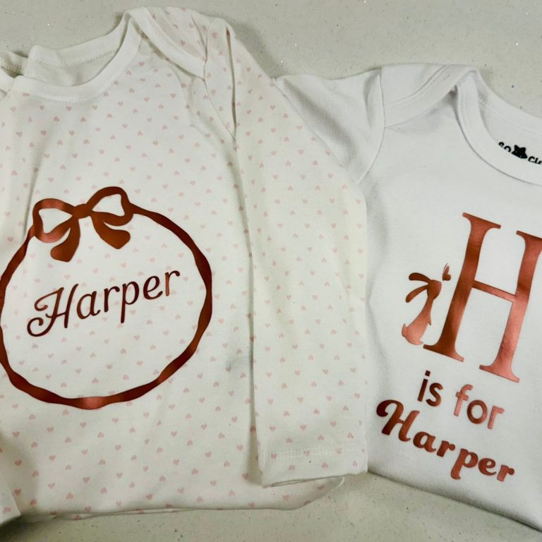 Bespoke personalisation for balloons, gifts and clothing, including names, messages, dates and logos. From children's and adults clothing to workwear and event styling.